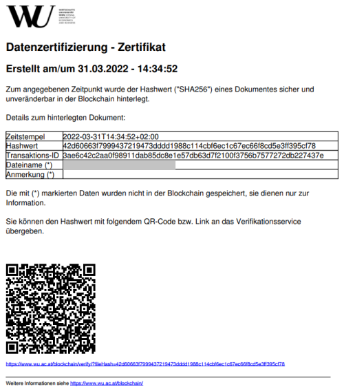 All certificates can be easily verified by using the webapplication, the client or third party verification services like described in one of our last blog entries (New Austrian Blockchain - verification service "Dual-Verify").